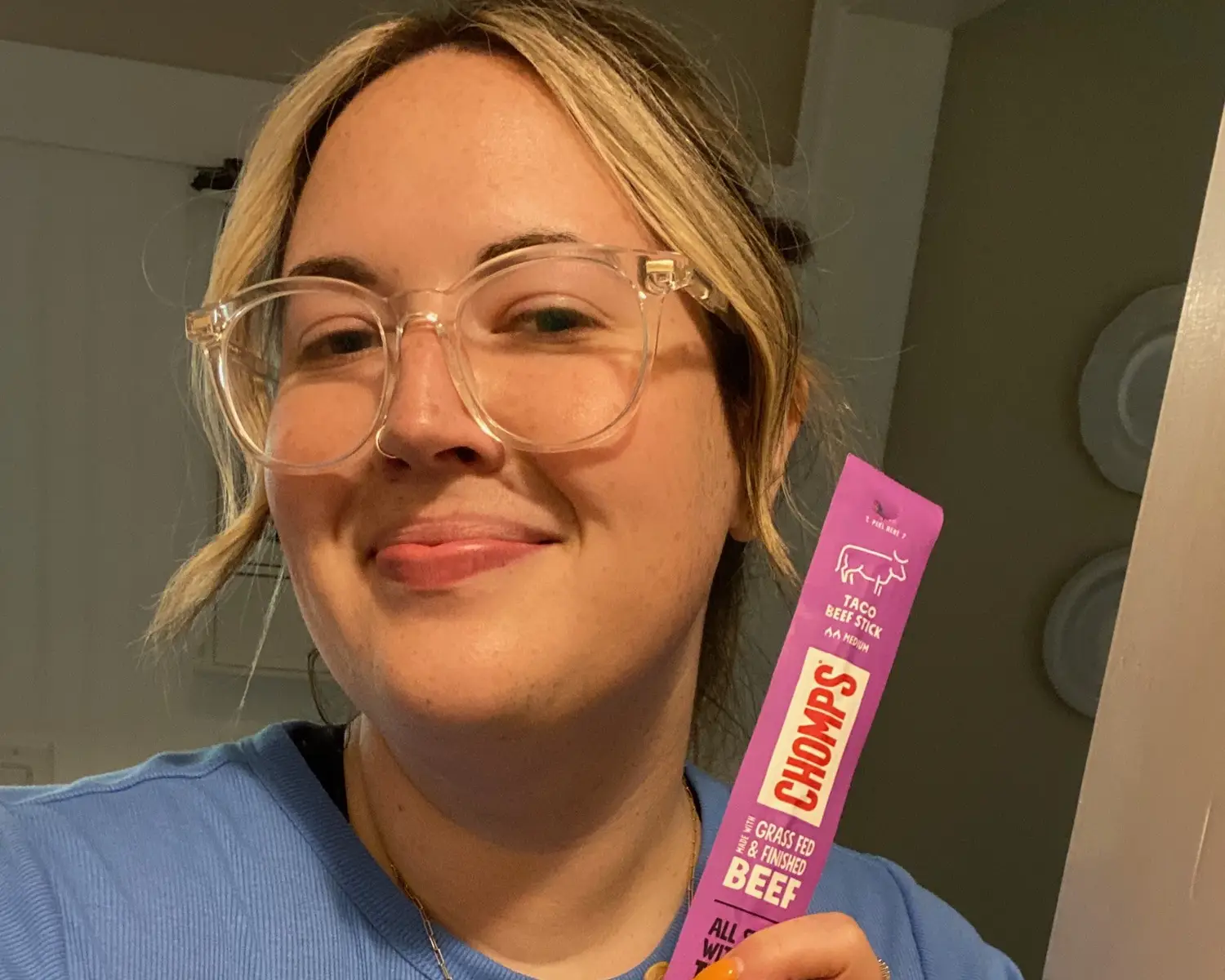 “I really love the Chomps beef sticks! They fix my hunger when I don’t know what to eat and get my focus off of things that aren’t as good for me. They are moist, snappy, and have just a little kick. Delicious!”